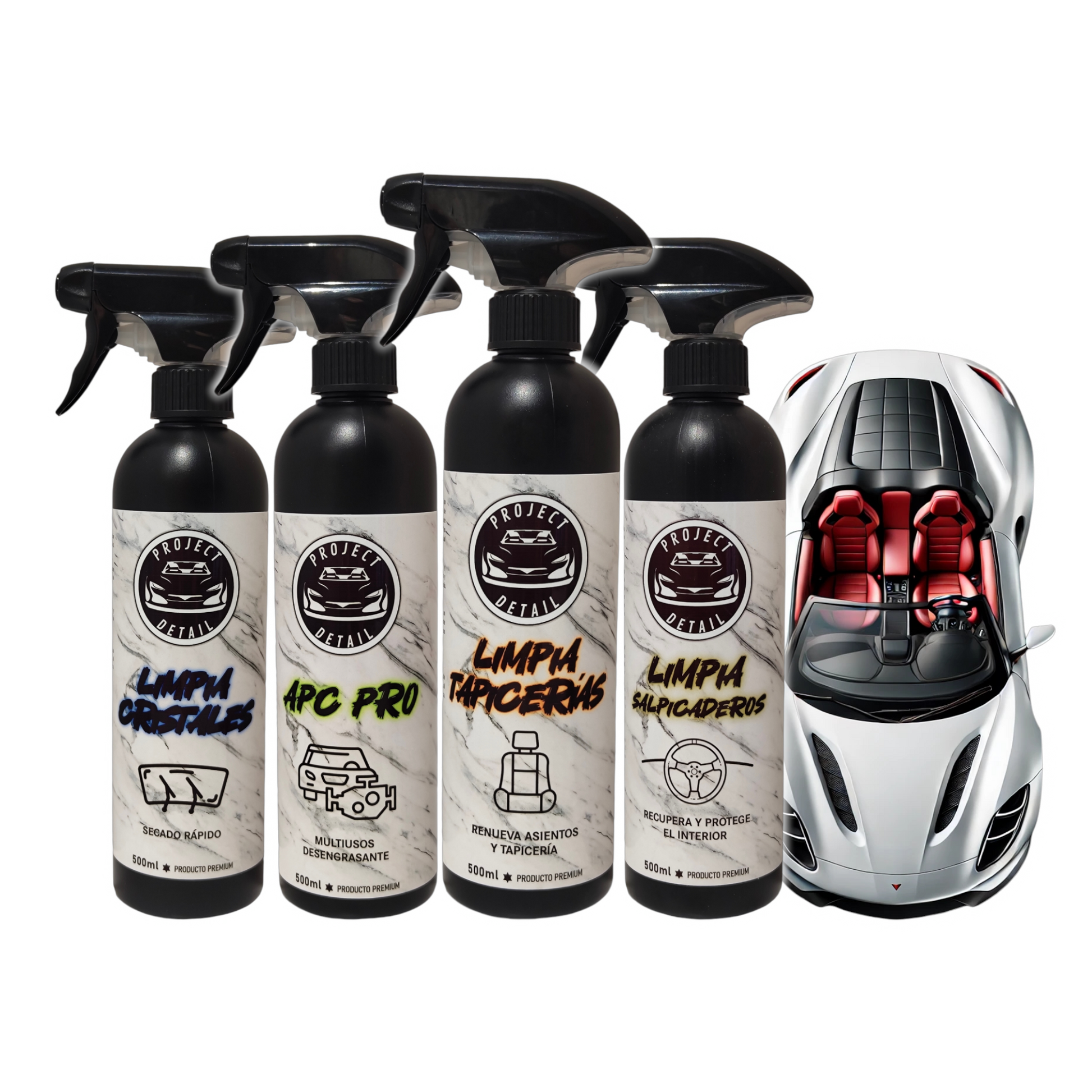 Limpia y restaura el interior de tu vehículo con este pack, asientos, salpicaderos, paneles, etc. (Incluye accesorios + Microfibras para su uso)
